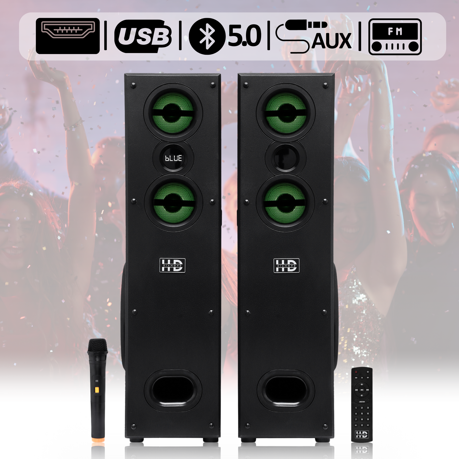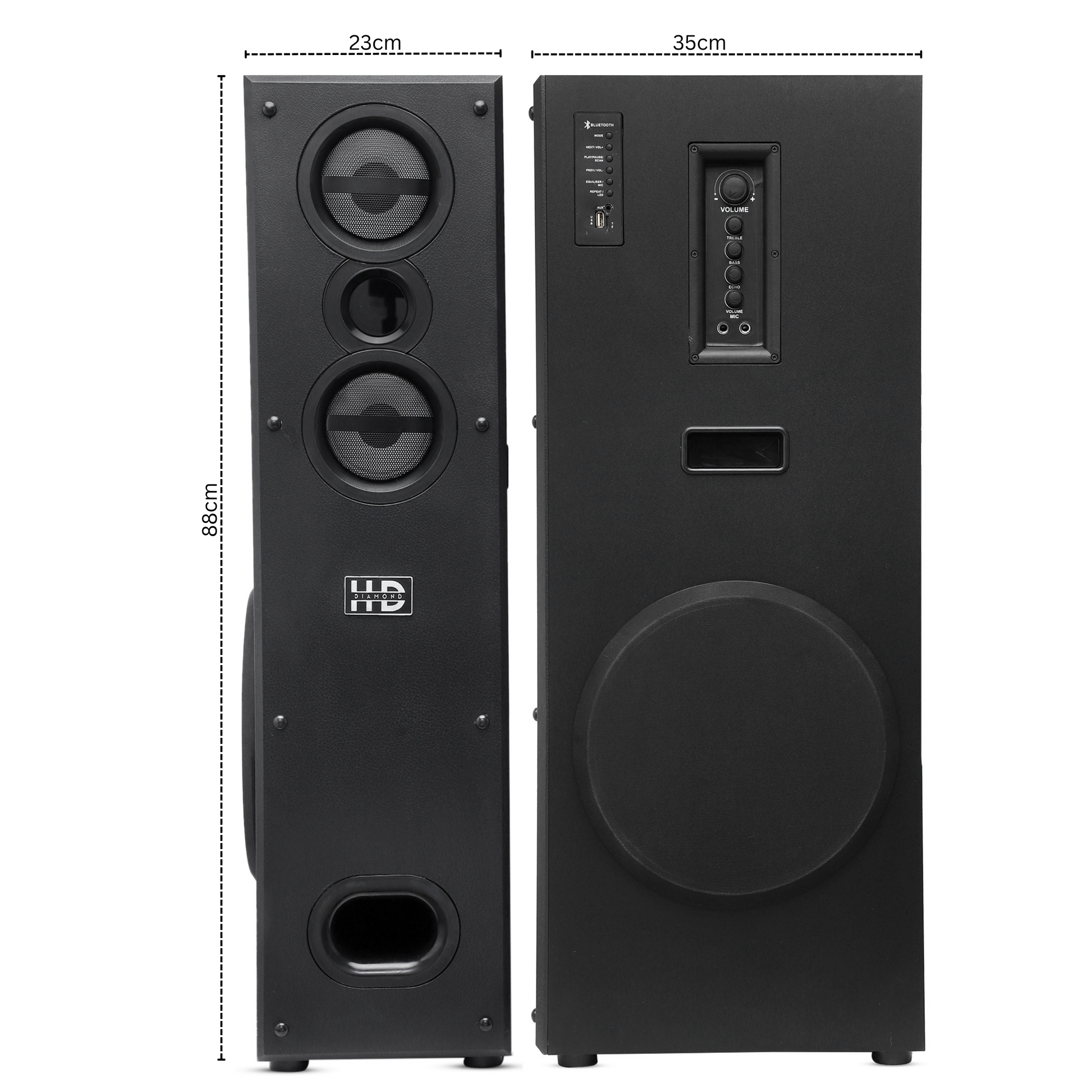 Bring cinematic, room-filling sound into your living space with the HD DIAMOND HD-1010BT. Designed for powerful bass, crisp vocals, and multi-device connectivity, this 2.0 tower speaker seamlessly blends power with style.