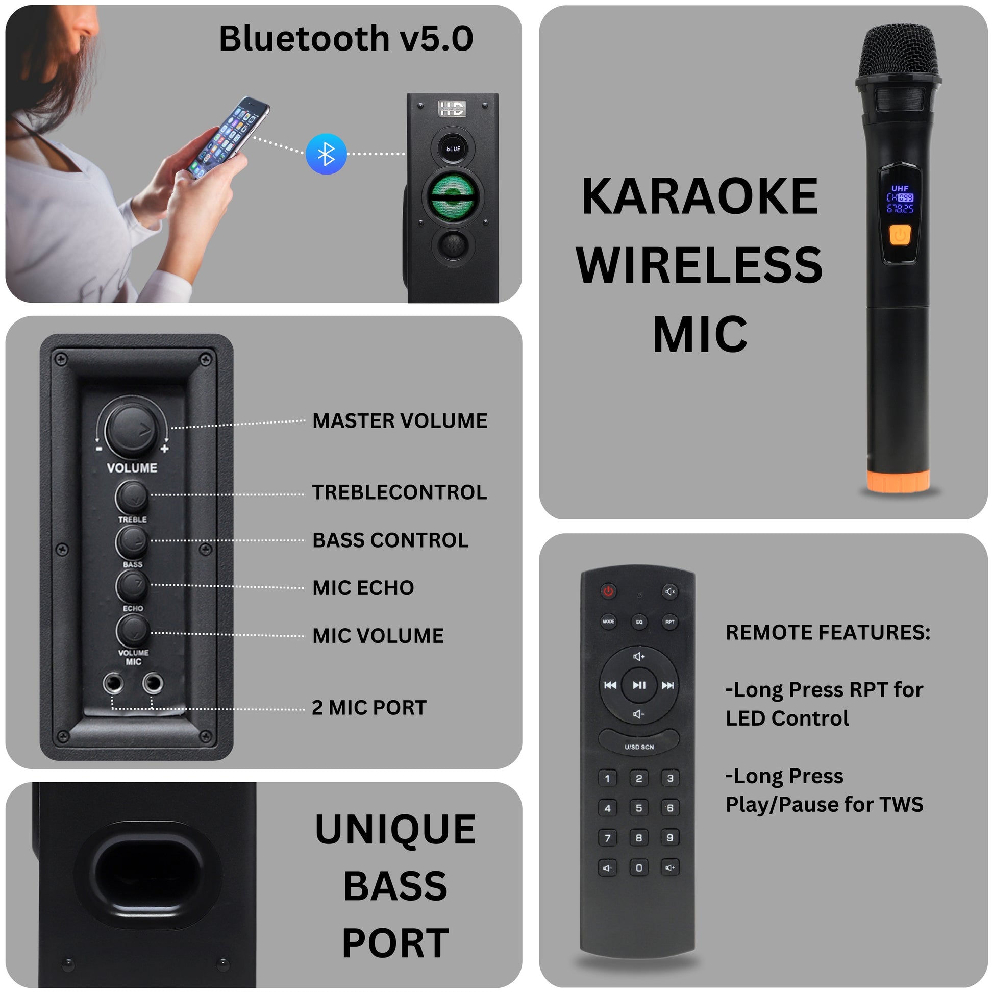 The HD DIAMOND HD-8080BT is a high-performance 2.0 multimedia tower speaker system designed for home theatre lovers, music enthusiasts, and party hosts who demand deep bass, clear vocals, and room-filling sound.